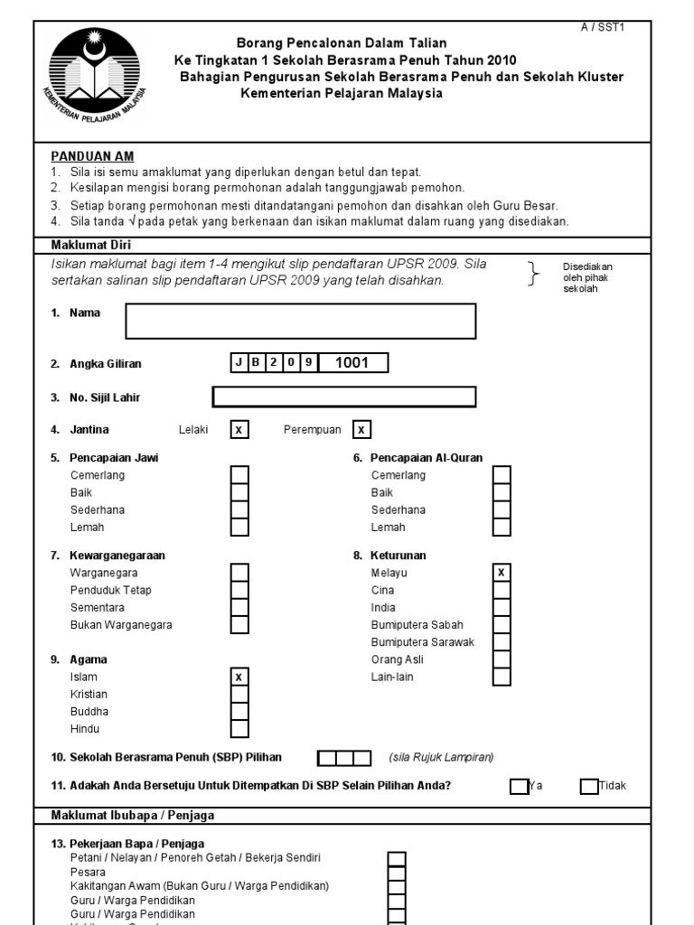 Format Borang Sst1 Permohonan Ke Sekolah Berasrama Penuh Pdf